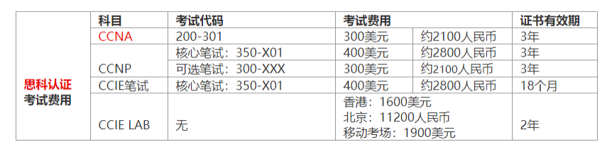 思科认证分为三个级别:CCNA(初级)、CCNP(中级)、CCIE(专家级)