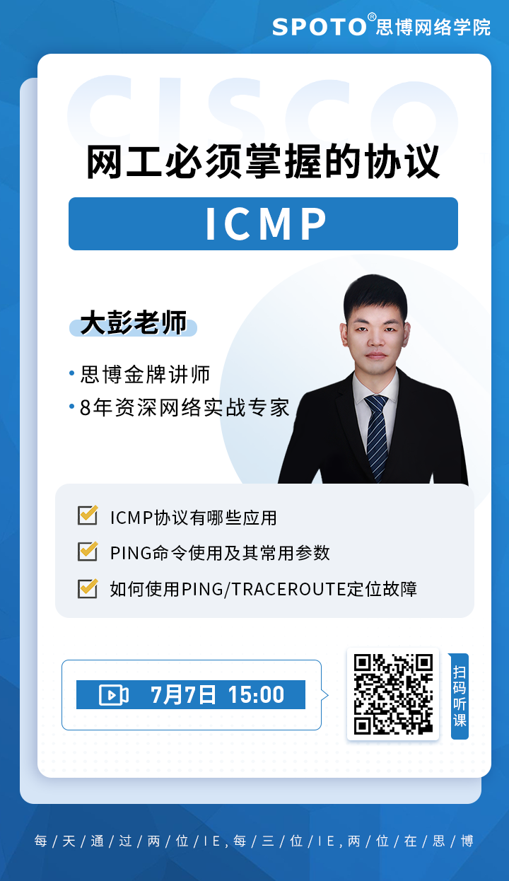 ICMP(Internet Control Message Protocol)Internet控制报文协议。它是TCP/IP协议簇的一个子协议,用于在IP主机、路由器之间传递控制消息。控制消息是指网络通不通、主机是否可达、路由是否可用等网络本身的消息。这些控制消息虽然并不传输用户数据,但是对于用户数据的传递起着重要的作用。那么ICMP协议有哪些应用?今天就为大家解答这一部分疑惑,带新手一起跟老师一起学习如何使用ping/traceroute定位故障以及ping命令使用技巧。