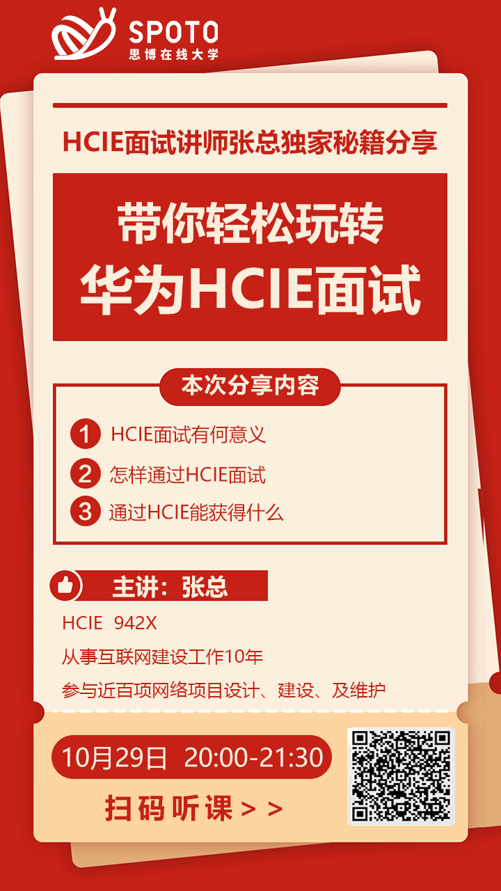 —————————————《独家秘籍,带你轻松玩转华为HCIE面试》