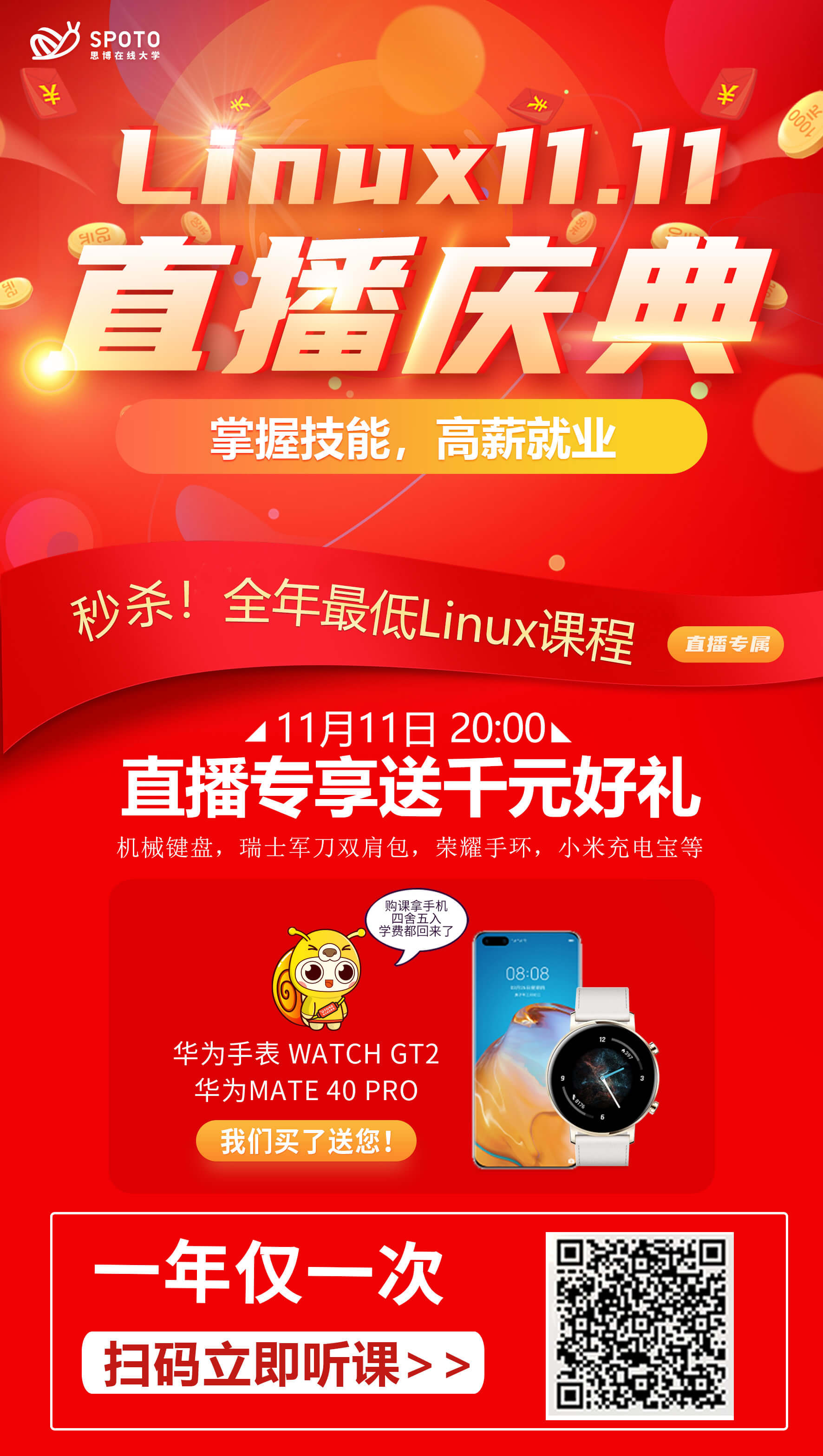 全年最低!思博Linux双11专场活动 ,看直播,拿大奖