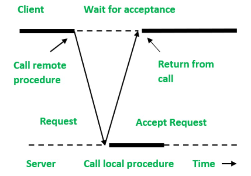 当客户端通过调用本地过程来发送请求时,该过程会将参数以请求格式传递出去,这样这些参数就可以作为消息被发送到远程服务器。 然后,远程服务器会执行本地过程调用(具体方式取决于客户端机器的请求内容)。执行完成后,远程服务器会以消息的形式向客户端返回响应。 目前,客户端处于阻塞状态。但是,一旦从服务器端收到响应,它就能从消息中获取到结果了。 在某些情况下,RPC请求也可以以异步方式执行。这样一来,客户端就不会因为等待响应而陷入等待状态。