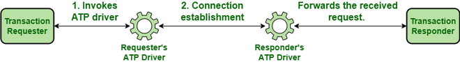ATP中的交易行为- 请求方调用了ATP接口。随后,该接口通过ATP驱动程序与响应方的ATP驱动程序建立专用连接。