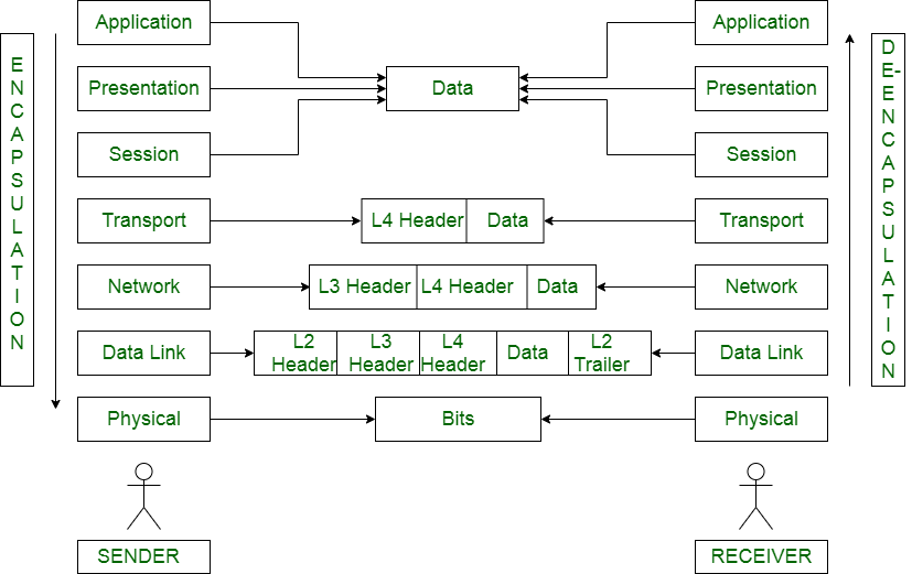 - 那个网络层它从数据链路层接收数据包。它会检查其中的IP地址。如果匹配成功,那么第三层中的头部就会被移除。现在,解封装后的数据包会被传递到传输层。