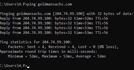 例如:让我们以现实世界的例子来说明吧。这里,我们将尝试访问两个网站:其中一个位于我所在的国家——印度。塔塔咨询公司还有一家位于海外的公司。高盛集团让我们看看会发生什么吧。