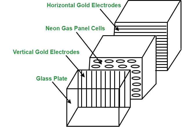 - 这些电极组以直角方式排列在玻璃板之间,从而形成长方形的隔间或单元结构。