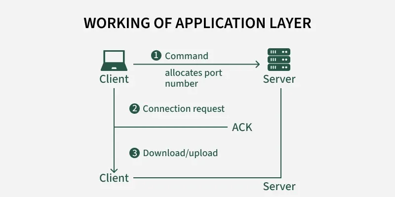 应用层的工作原理- 起初,客户端向服务器发送一个命令。当服务器接收到该命令后,它会为客户端分配一个端口号。