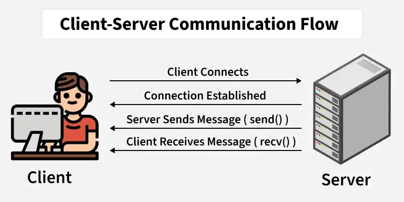套接字编程使得两个程序能够通过网络进行通信。在这里,我们用C语言创建了一个简单的客户端-服务器应用程序。当连接建立时,服务器会向客户端发送消息。这种通信方式使用的是TCP套接字,从而实现可靠的数据传输。