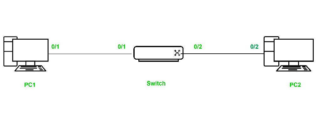 让我们以两台连接到交换机上的电脑为例。注意:这两台电脑并没有被分配了IP地址。