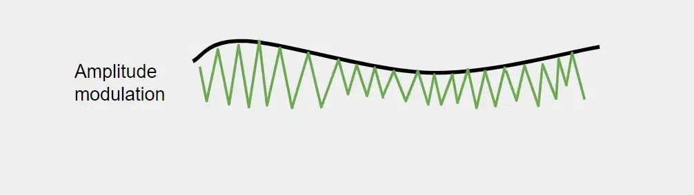- 在振幅调制中,信号的幅度(强度)会根据数据的变化而发生变化。