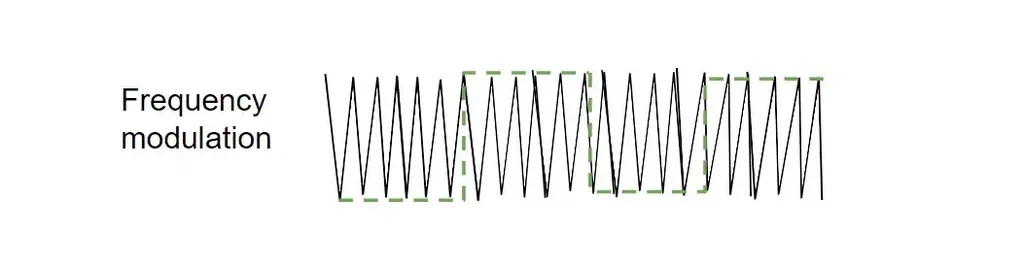 振幅调制- 在频率调制中,信号的频率会被改变,以此来表示数据。