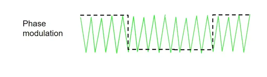 频率调制- 在相位调制中,信号的相位会被改变,以此来编码信息。