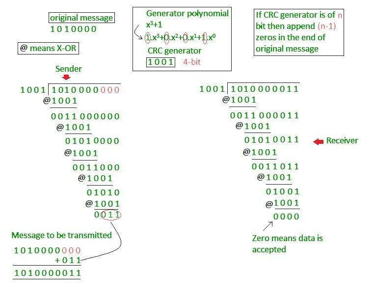 - 接收方执行相同的除法操作,然后检查余数是否与发送过来的CRC值相符。