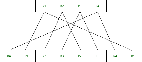 EP(k1, k2, k3, k4) = (k4, k1, k2, k3, k2, k3, k4, k1)