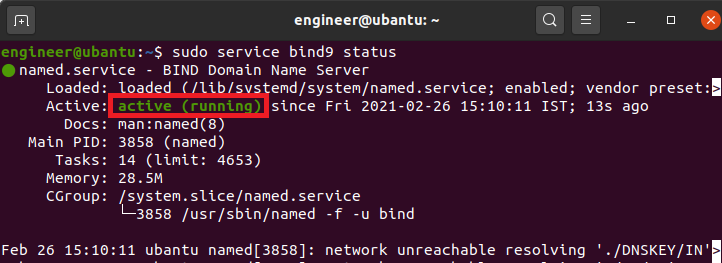 sudo service bind9 status