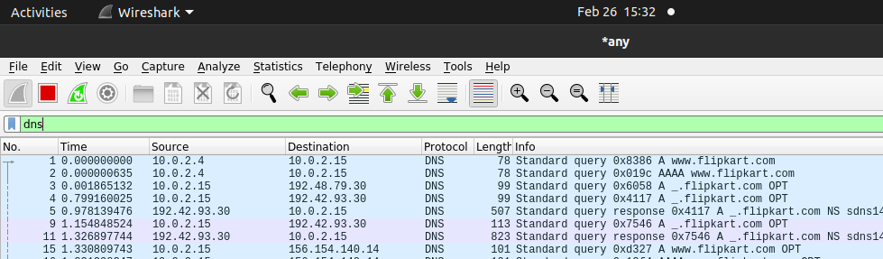 - 现在,输入“DNS”吧。应用显示过滤器然后按回车键。