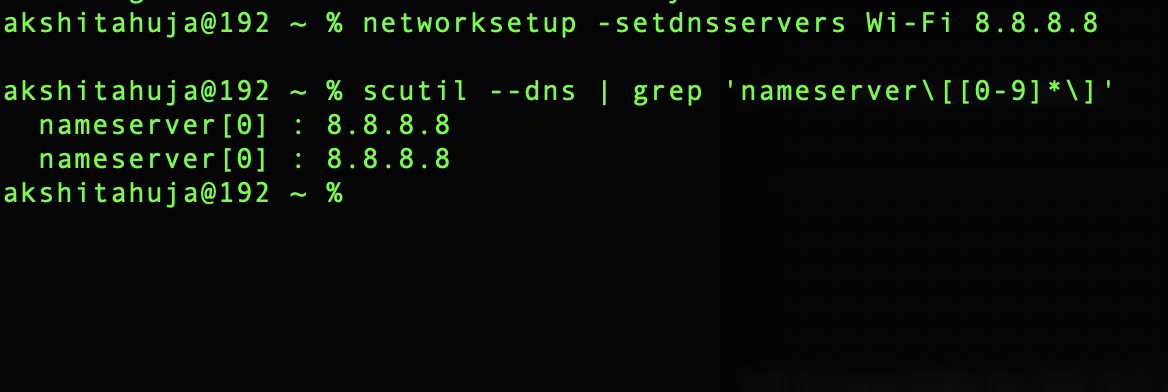 $ networksetup -setdnsservers Wi-Fi <Ip Address Of your custom DNS Server>