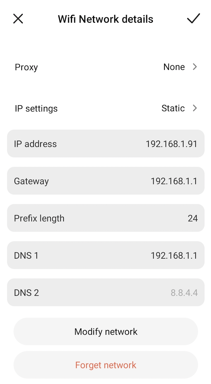 WiFi设置 -> 您的WiFi网络详情