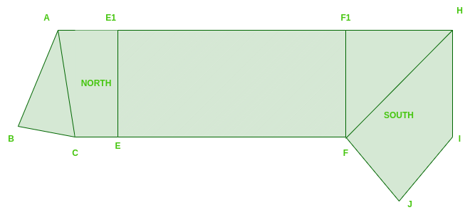 假设有一个网络,该网络被划分为两个区域:北部和南部。这两个区域通过连接点E1F1和EF进行连接。