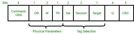 - 读取器传输和标签响应的物理层参数,由接下来的几个标志DR、M和TR来决定。