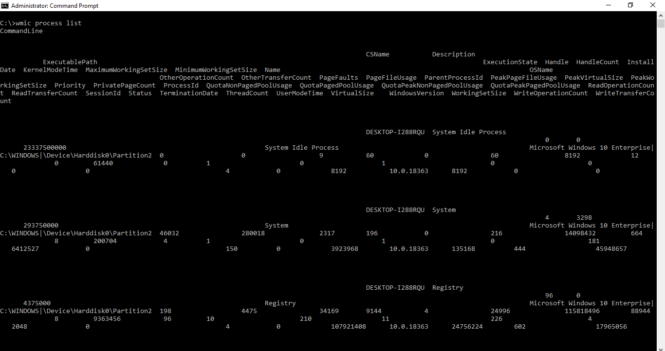 使用 wmic process list 命令可以查看当前正在运行的进程列表。