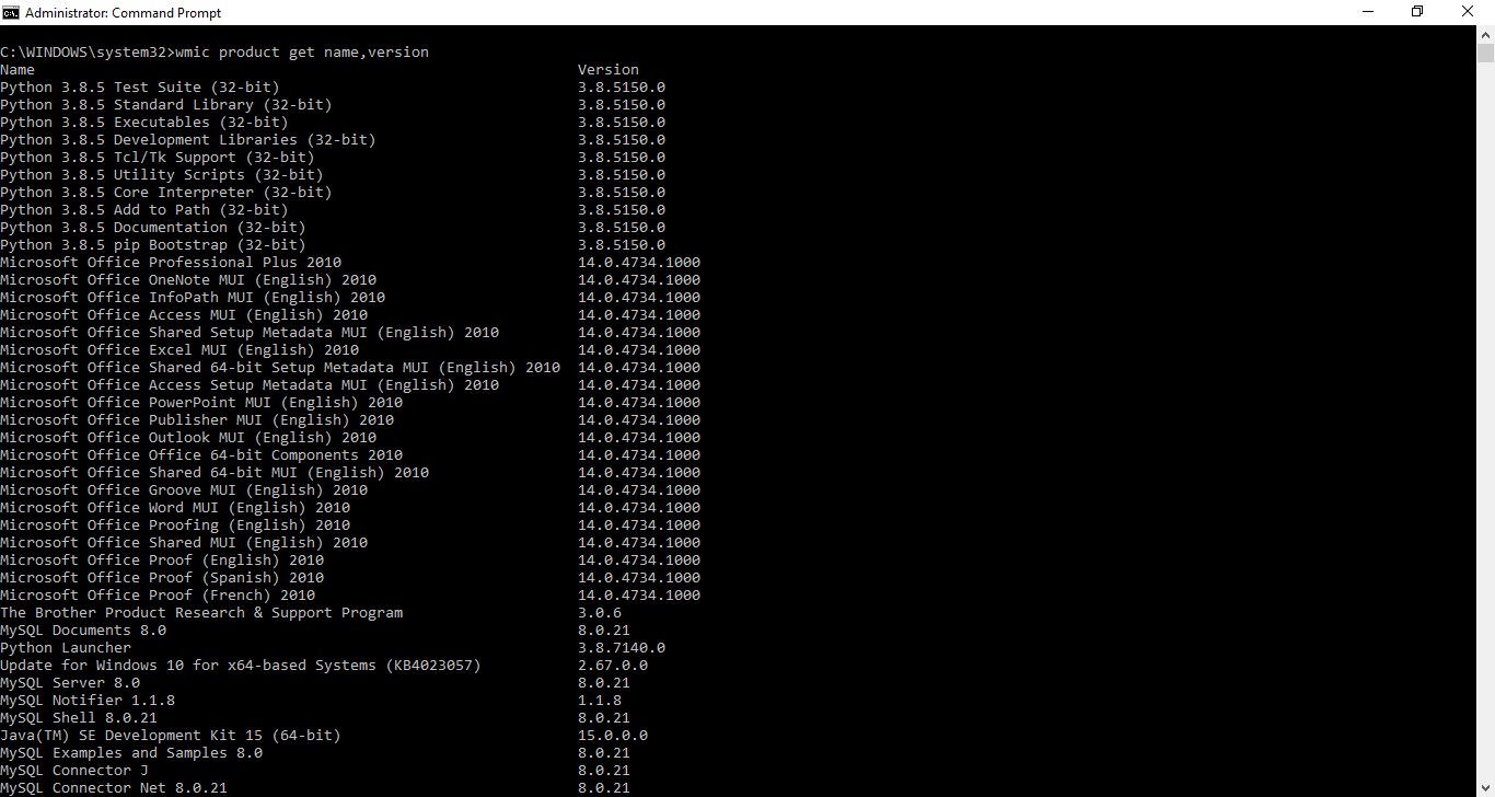 该命令会返回计算机上安装的所有产品的列表。这些产品都是由知名开发者开发的,并且得到了Windows操作系统以及微软的认可。