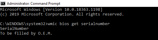 该命令用于获取计算机的序列号。这对于获取BIOS的序列号非常有帮助。我们最终得到的就是我们的序列号,而不是O.E.M.了。