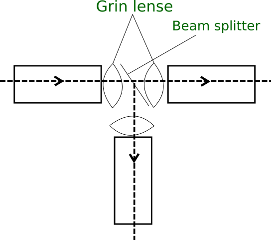 - 三端口连接器 –它将输入的信号分成两部分。在这里,没有使用分束器或分光镜来分割信号。