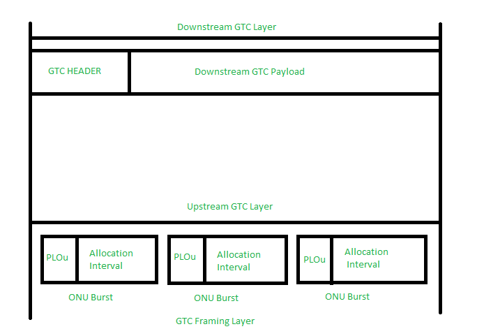 - 在上游方向:它描述了从用户到OLT的复用机制。这种机制使得数据包能够以TDMA的方式被传输。