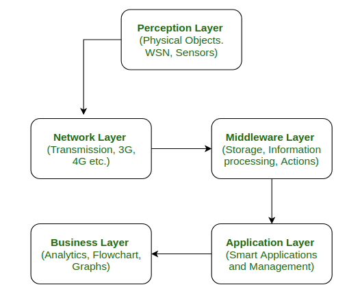 物联网(IoT)它包含了许多智能设备,这些设备通过各种网络技术连接到庞大的互联网网络上。 这些技术大多都是无线的。 这使得结构变得更加复杂,同时也难以管理。 因此,需要采用某种建筑方式来实现这一目标。 所谓“架构”,指的是对网络中的物理组件及其功能组织和配置进行规范化的结构。此外,它还包括网络的运行原则与流程,以及网络中使用的各种数据格式。 物联网的发展取决于所使用的技术、应用领域以及商业因素。 对于物联网设备来说,有多种不同的架构可供选择。 不过,所谓的“五层架构”被认为是最理想的物联网架构方案。