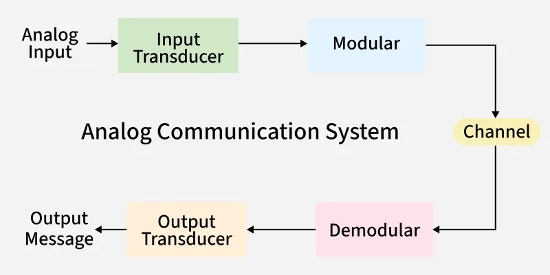 - 语音、视频或数据首先被转换为连续的电信号,然后通过通信通道进行传输。