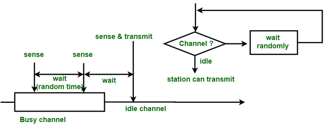 - 如果频道处于繁忙状态:该电台会等待一段随机的时间,然后再次检测该频道是否仍然可用。