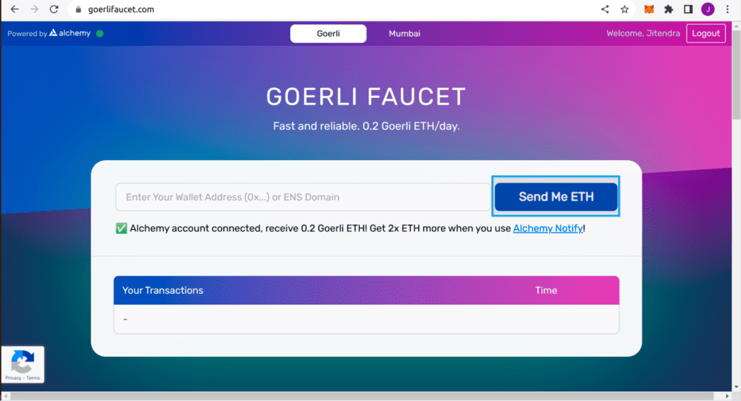 - 从主以太坊网络切换到Goerli(或其他测试网),这样你就能看到该网络中的余额和交易记录了。