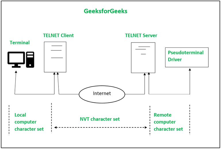 - 远程Telnet服务器将这些字符转换为远程计算机能够理解的格式。