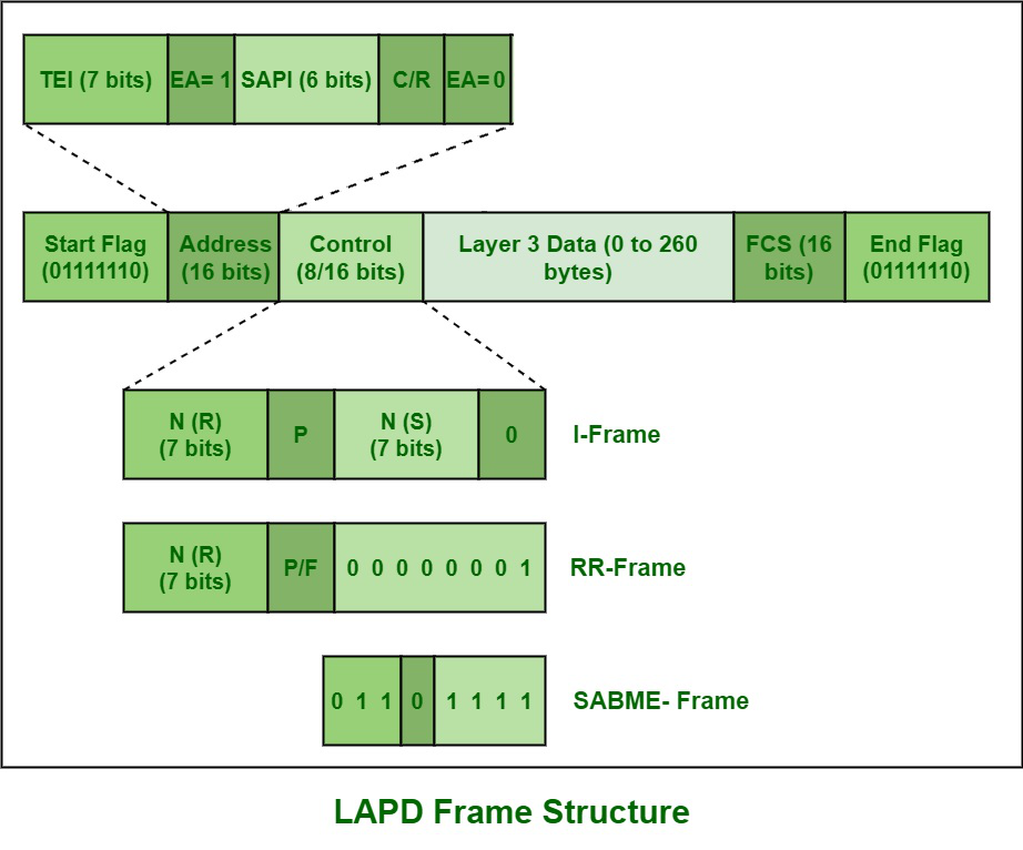 框架结构:LAPD的基本数据链路层结构如下:它包含以下字段: