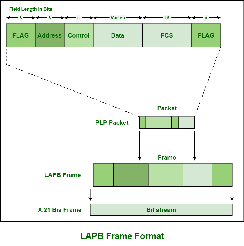 - 旗帜领域 –通常,需要采用二进制模式,即01111110,来标记LAPB帧的起始位置。比特填充是一种技术或机制,它被发送方和接收方共同使用,目的是确保数据帧的边界标志所对应的二进制模式不会出现在数据的字段中。