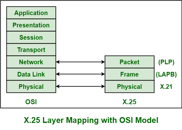 - 数据链路层 :数据链路层也被称为帧层。 这一层是ISO高级数据链路层标准(HDLC)的实现或开发成果,该标准也被称为LAPB(链路访问程序平衡模式)。 此外,它还能实现两个物理上相连的节点或X.25节点之间的无错误通信与数据传输。 LAPB还允许数据终端设备或数据电路终止设备简单地启动或结束通信会话,或者开始数据传输。 这一层是X.25协议中最为重要且不可或缺的部分之一。 这一层还提供了一种机制,用于在传输过程中对每个跳点进行验证。 这项服务还确保了数据帧或数据包的传输过程具有高度有序性、无错误,且能够按照正确的顺序进行传输。 在帧级别,可以使用许多不同的协议。具体如下: