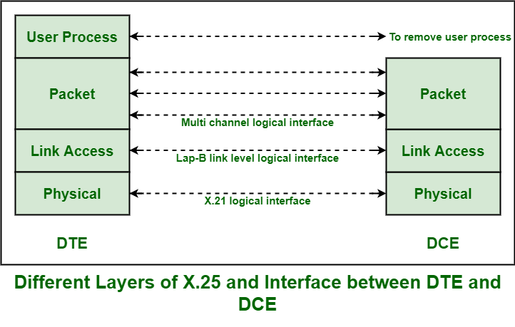 - 数据包层:“数据包层”也被称为X.25网络的“网络层协议”。 这一层通常负责管理各种DTE设备之间的端到端通信。 它还定义了如何借助PVCs(永久虚拟电路)或SVCs(交换式虚拟电路)来在网络中的各个节点和交换机之间传输X.25数据包。 这一层还负责管理和控制各种设备的连接与断开过程,同时管理各DTE设备之间的数据流传输。此外,它还具备多种路由功能,能够同时处理多个逻辑或虚拟连接。 这一层还定义了数据包的格式,同时解释了数据帧的传输与控制相关的流程。 这一层还负责建立连接、传输数据帧或数据包、结束或终止连接、处理错误以及进行流量控制。此外,它还能通过外部虚拟电路来传输数据 packets。