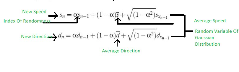 有一些室内移动模型,比如随机行走模型、随机路径点模型以及随机方向模型。同样地,也有一些室外移动模型,比如高斯马尔可夫模型,以及基于随机行走模型的概率性版本。高斯-马尔可夫模型:这种移动性模型是为了模拟个人通信服务而提出的。 例如,几年前,只有固定电话而已。但现在,有了无线电话,人们可以在房子周围自由地使用这些电话了。 对于这种类型的服务,通常会使用高斯马尔可夫模型。该模型能够适应不同的随机性水平。 在室内移动模型中,有一些固定的模拟区域,在这些区域内,我们可以进行随机行走、随机选择路径或随机改变方向的操作。 但在户外移动模型中,并不存在“模拟区域”这一概念。 这完全是随机的。最初,每个移动节点都会被分配一个当前的速度和方向。 这意味着,每个节点都有其初始方向和初始速度,而且这些参数可以随机发生变化。 它可以自由地进入和离开。 第n时刻的速度和方向的数值,可以通过以下公式来计算得出。 新的速度和新的方向可以通过以下公式轻松计算出: