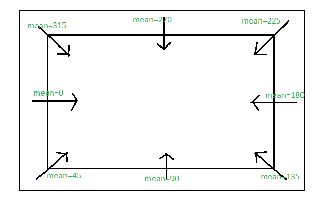 现在,由于这个模型中没有模拟区域。假设物体离开该区域或位于该区域的边界上。那么,平均速度和平均方向值就会被替换为平均值。为了计算平均值,我们可以使用量角器。通过将两个量角器连接起来,就可以得到完整的360度范围。