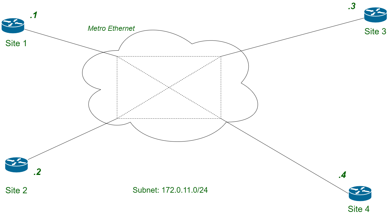 图/图片 –多以太网线路服务 - 以太网局域网服务(E-LAN):假设有一家企业拥有多个站点,而这些站点之间需要相互连接。在这种情况下,就可以采用E-LAN服务。所有的流量都不需要经过中央站点来处理。每个站点都可以独立地与其他站点进行数据交换。因此,这是一种完全网状拓扑结构。需要注意的是,所有的链接都位于同一个子网络中。