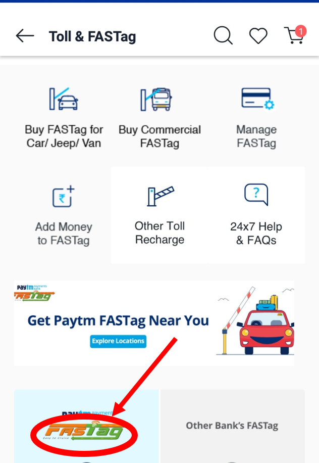 在Paytm应用程序中可以选择使用Fastag服务。