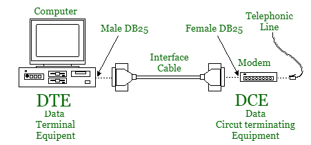 | DTE指的是数据终端设备。 | DCE指的是数据通信设备。 |