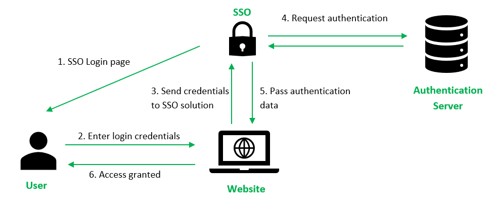 - 认证信息会从 SSO 解决方案传输到用户能够访问该网站的网站。
