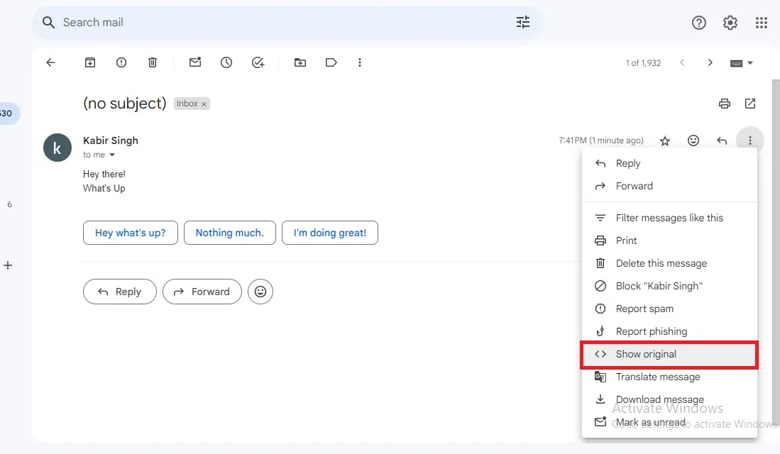 当您点击“三个点”时,屏幕上会出现一个下拉菜单,其中包含了多个选项。请在所有选项中选择合适的选项。“显示原始内容”从菜单中点击该按钮。