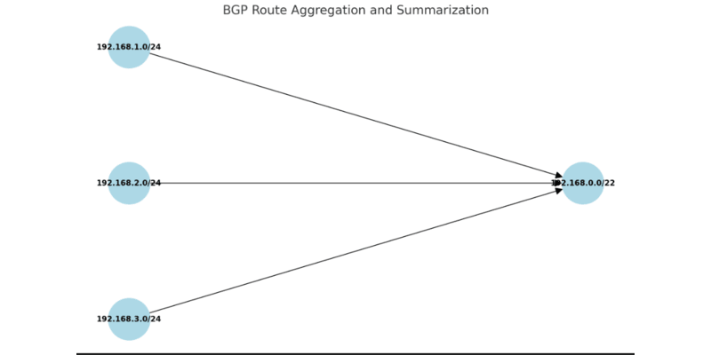 - 路线聚合:这是从一组信息中获取数据的操作。IP前缀在网络中的某个特定部分,这些地址会被整合为一个更统一的、更具包容性的IP前缀。这样一来,就不会形成庞大的路由表了,正如我们之前所解释的那样。