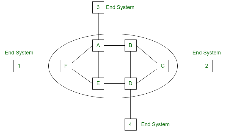 虚拟电路的工作原理:- 在第一步中,需要在两个终端节点之间建立一种传输介质。