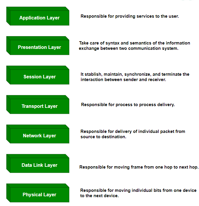 - 它分为7个层次,每个层次都负责执行特定的任务。