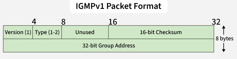 IGMPv1数据包格式- 主机通过发送成员请求来加入多播组。