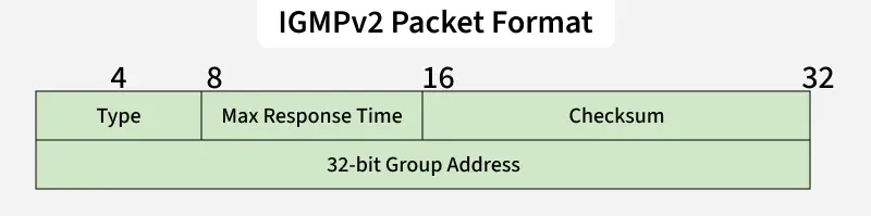 - 字段:版本、类型、未使用的值、校验和、组地址。