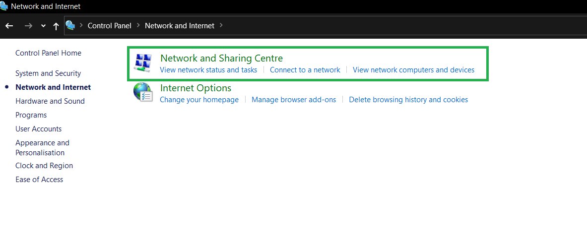 步骤5:在控制面板中,选择“网络和互联网选项。